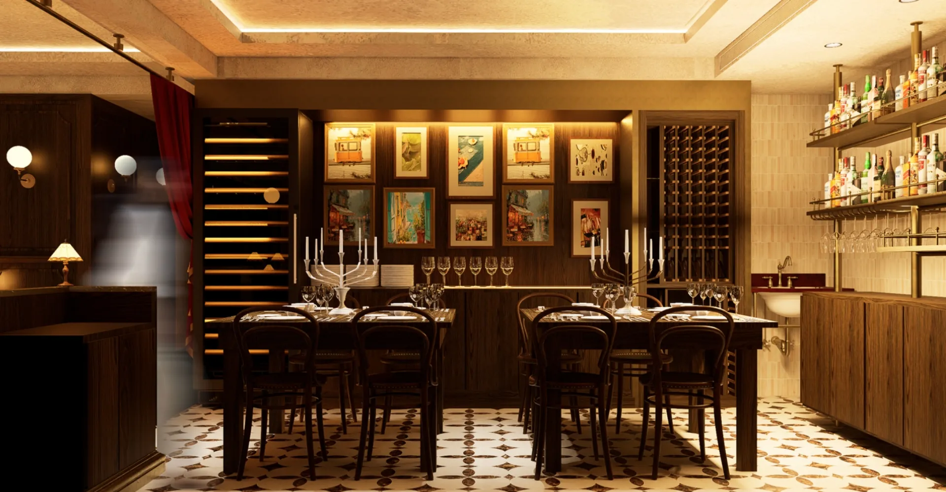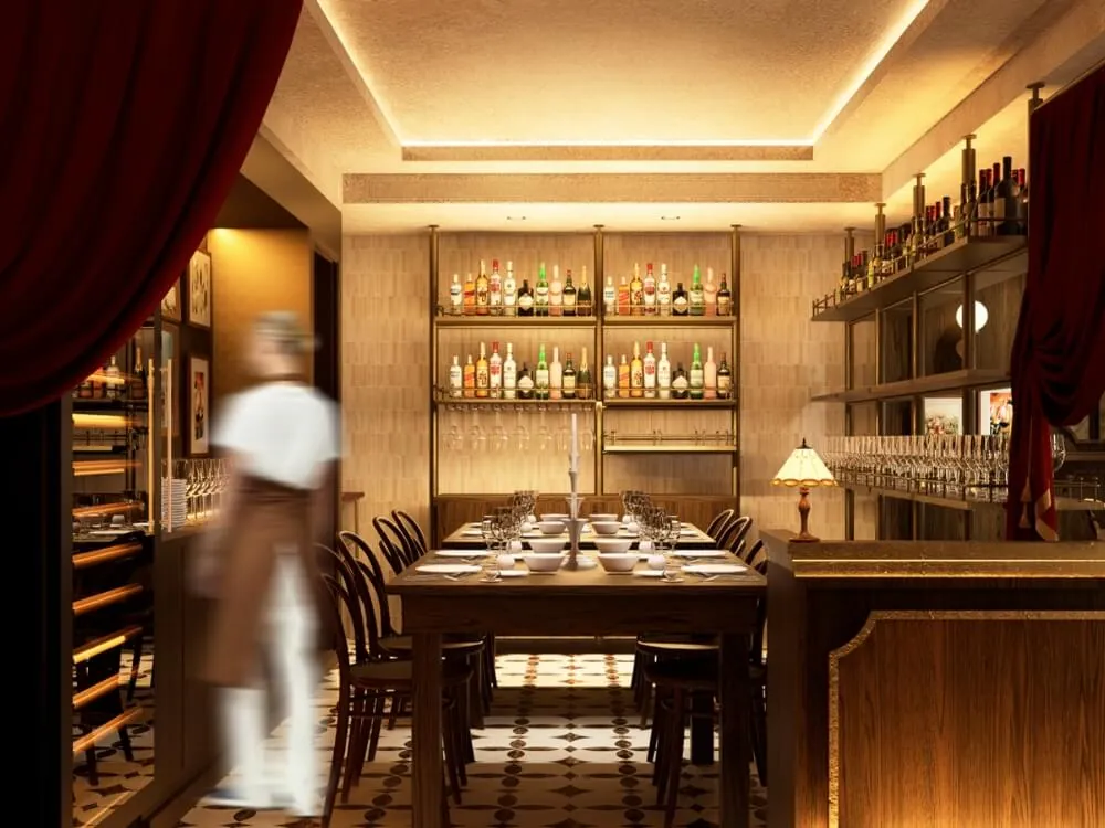 Upstairs an intimate French Bistrot, taking guests on an experience and taste journey to the South of France and Brittany by the sea.