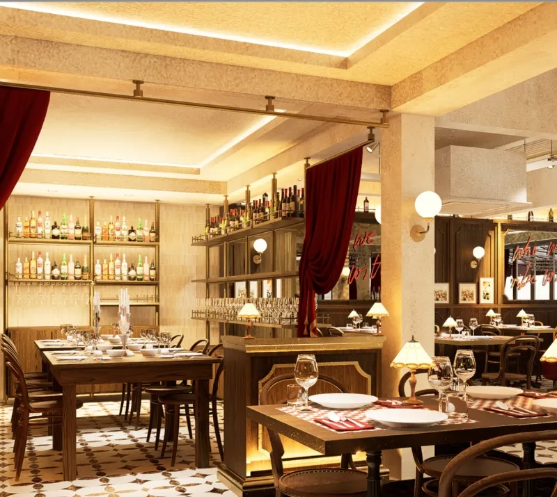 “Upstairs an intimate French Bistrot”